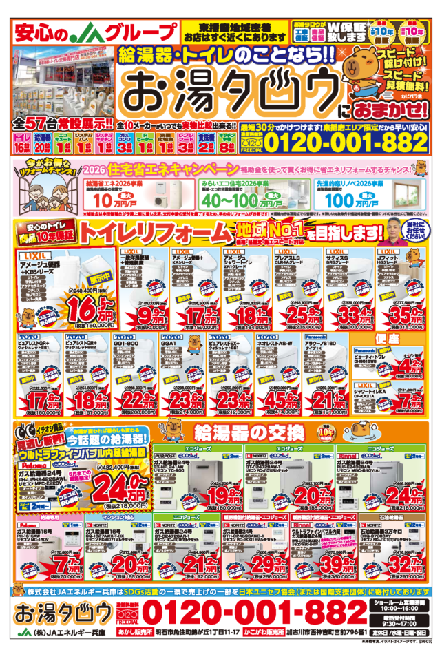 【明石・東播エリア限定】12/5・6開催!給湯器&トイレリフォーム祭|お湯タロウ在庫処分セール実施中!