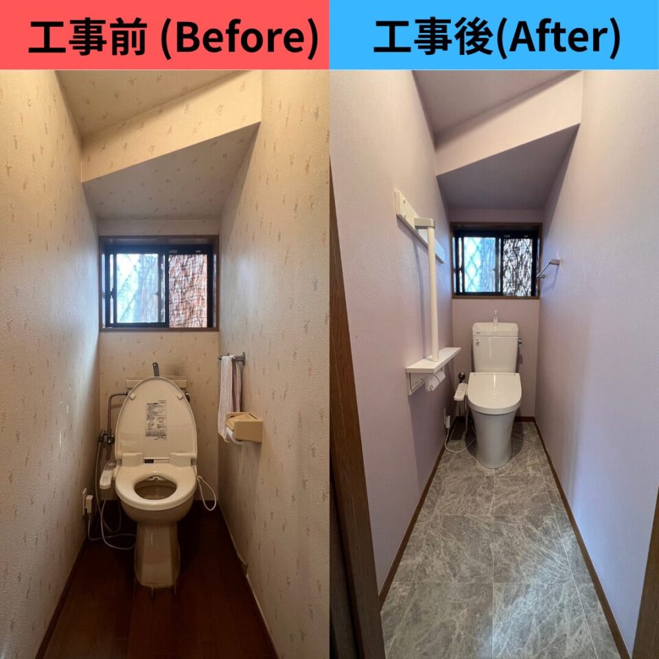 トイレ取替+内装工事(壁紙の張替+CFクッションフロアの張替)を施工いたしました。