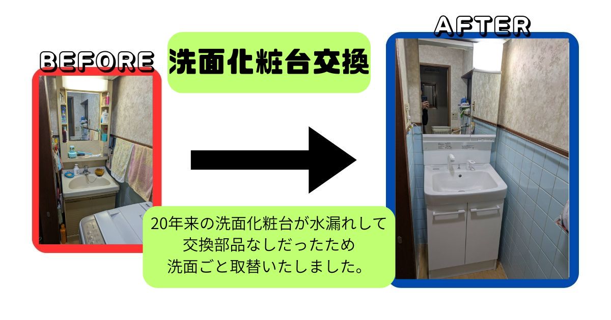 一度お伺いをして、水漏れを暫定的に止める処置を施し、その後新しい洗面化粧台に交換することを提案いたしました。